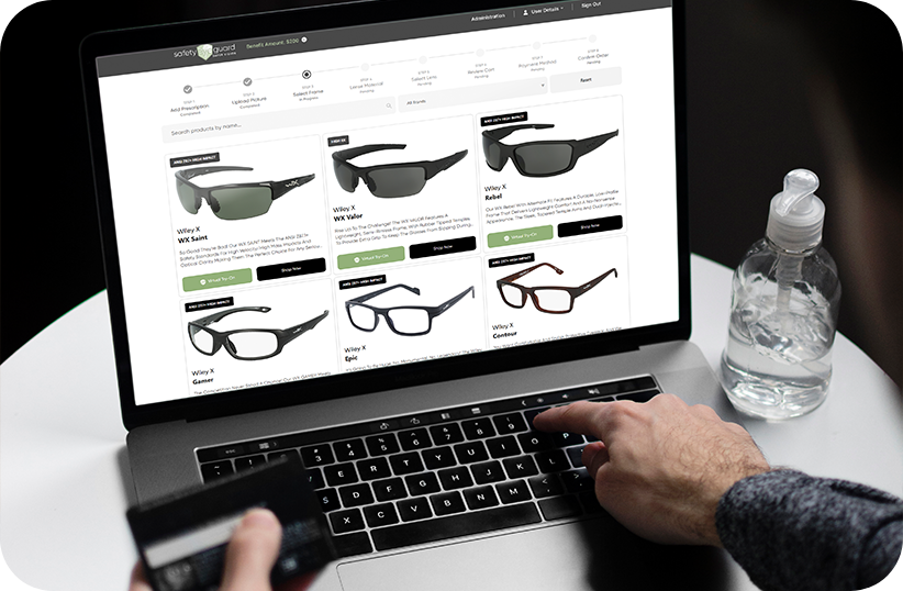 With prescription entry, virtual try-on, and direct shipping, employees get the protection they need faster, simpler, and with full support.